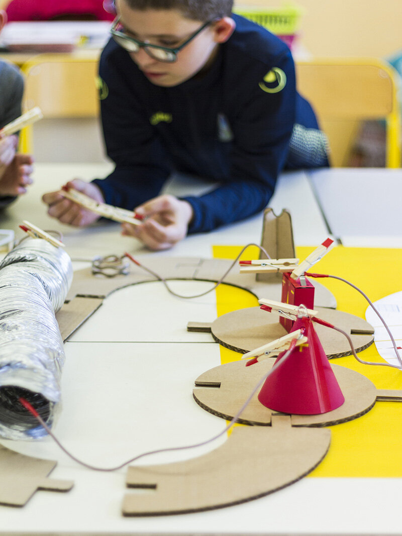 This service, sold or rent to local council and schools, offer a variety of workshops, packed in a « pedagogic briefcase » including all the required accessories, plus the instructions dedicated to teachers to lead them in the setting up.